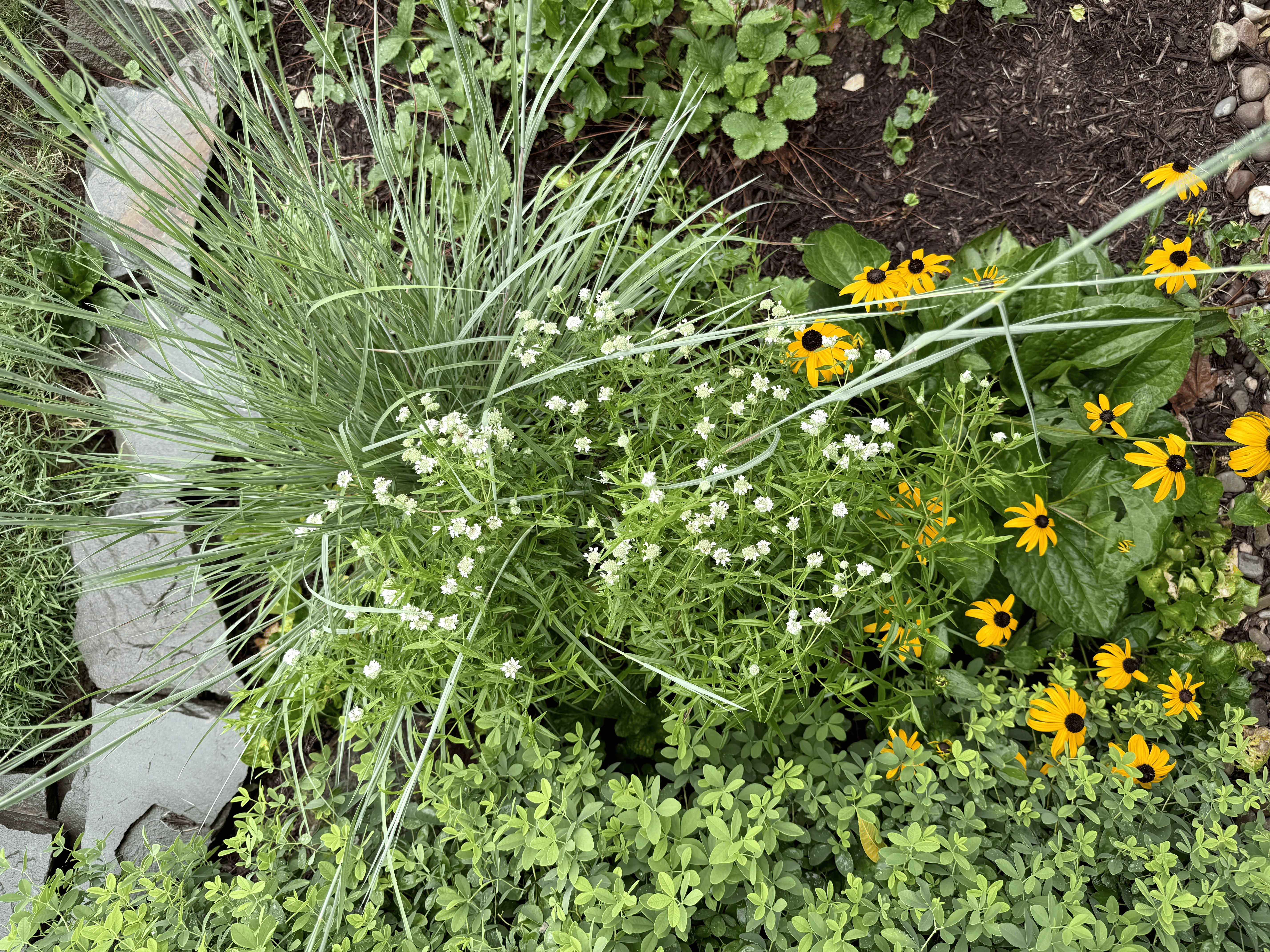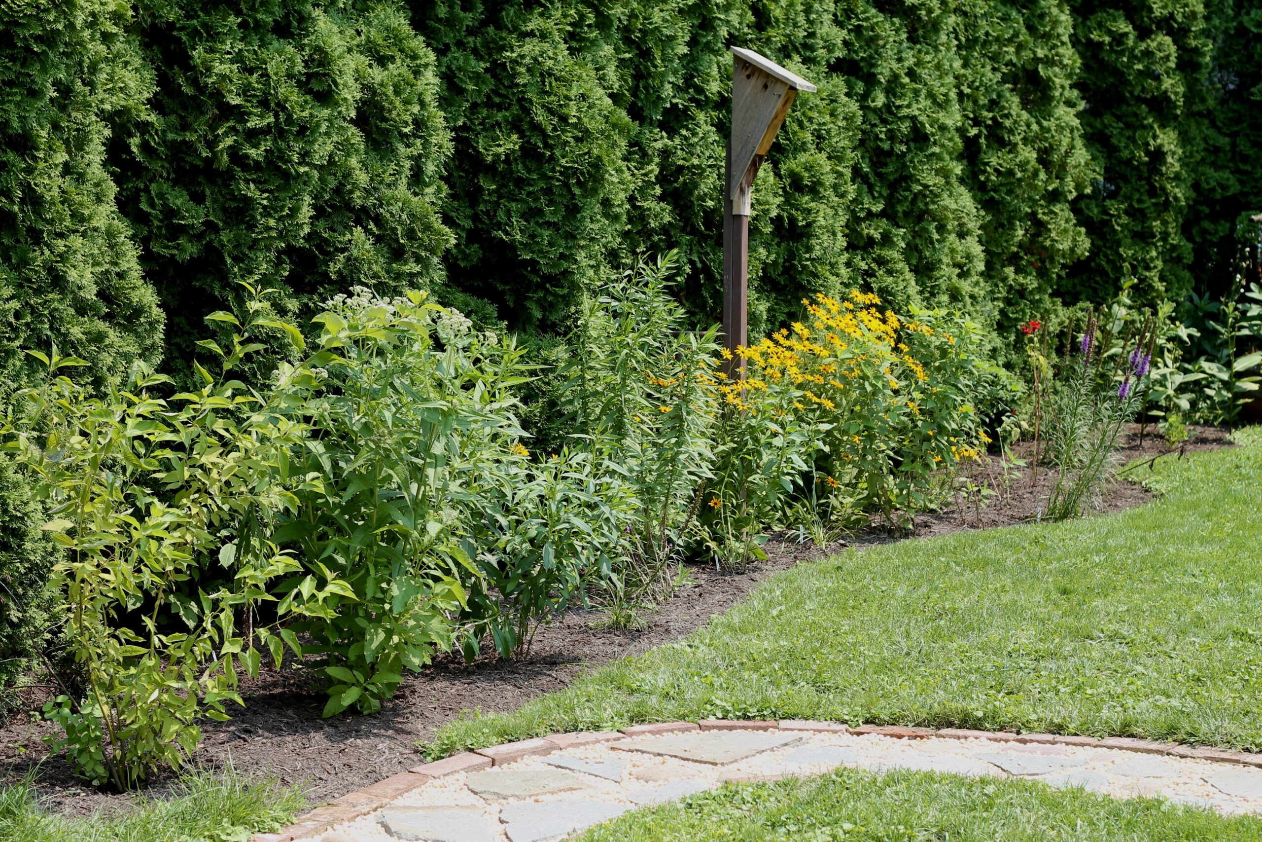 We created a rain garden with a variety of plants to host pollinators and mitigate stormwater drainage. Featuring a garden pathway for the wandering spirit!